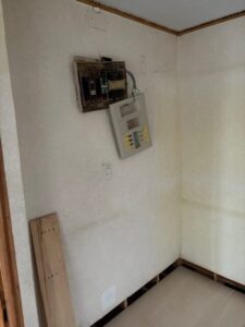 市内・現場ですが順調に進んでいます。2部屋→1LDKになっています。床は塩ビタイルで仕上げます。11月・引き渡しを目指していますので、職方さん達には頑張ってもらっています。