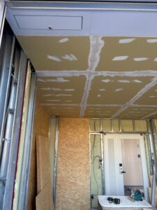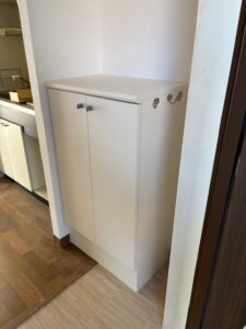 昨日は以前に載せた現場に戻り工事です。下駄箱交換よりもコストが安いのでダイノックシート貼りで仕上げました。また、ガラスフィルムを施工した部屋にクロスを貼るのでパテをしました。クロスは土曜日に来る予定です