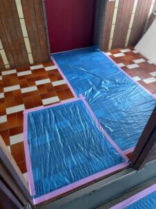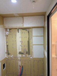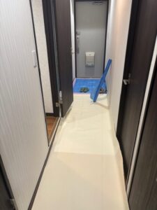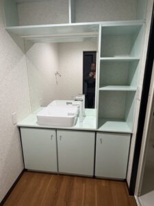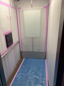 今日は朝から市内の分譲マンション現場です。洗面化粧台交換・内装工事です。朝1番は共用部・エレベーター内の養生です。朝は寒いので体に応えますね・・設備屋さん、大工さんで壊してもらい私が搬出係りです。