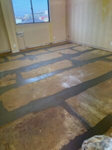 今日は朝から新座市に来ています。大工さんと一緒に在宅現場です。お客様が荷物移動を工事前にしてくれてたので、スムーズに工事が進行しました。大工さんと痛んでいる床を剥がし、貼り治し下地処理をしCFを貼り完了です。15時に工事が終わり安心して帰路に着きます。明日は2件の下見に行き、午後から休養します