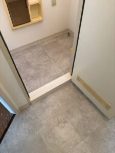 先日・載せました現場、内装工事が終わりました。洗面所に塩ビタイルを貼って有り、目地から水が入っているので今回はCFを貼りました。水回りに塩ビタイルは私はお勧めしませんね・・・さー明日は流し台・トイレを付けてクリーニング隊にまかせます。月末・仕上げです