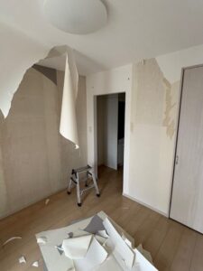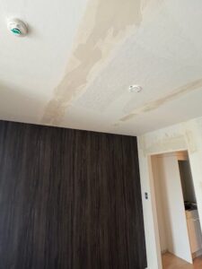 今日は入間市の現場に来ています。1kの天井・壁の貼り替えです。石膏ボードの天井と壁の隙間が凄いので、壁から貼り、天井を後に貼りました。剥がれも良く15時には片付け終わり帰路に着きました。壁1面は木目で仕上げました