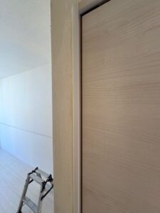 本日は2件の現場です。朝から所沢市・クロス・塩ビタイル貼りをし15時に終了したので、まだ時間が有るので入間市の現場に来ました。クローゼットの縦枠・シート貼りです。既存のシートが浮いていたので剥がし→下地処理を2回→プライマー塗布で仕上げました。何とか暗くなる前の終わりましたので帰路に着きます。