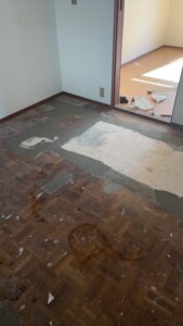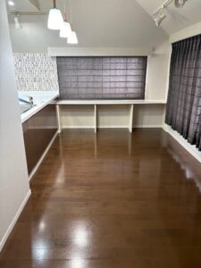今日は、和室の繊維壁の上にクロスを貼る工事です。下地処理をししっかり乾かしたら貼り始めます。和室の繊維壁・京壁は良くポロポロ落ちるからとご相談をお受けしますが、クロスを貼ることも可能ですのでご連絡ください